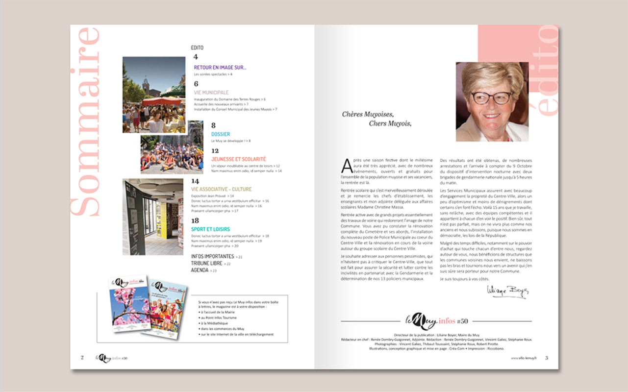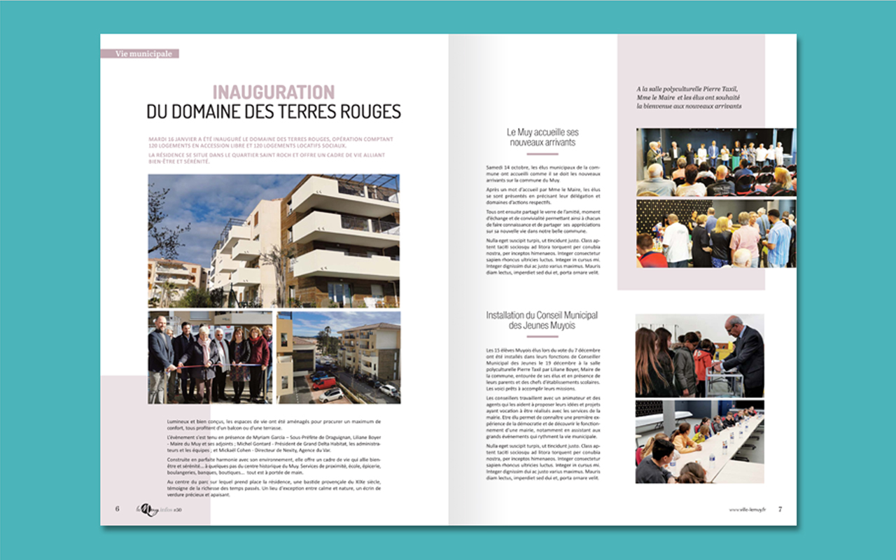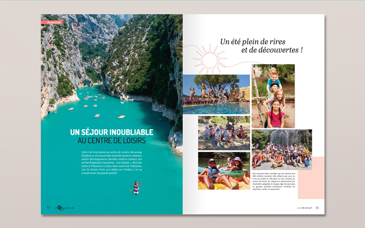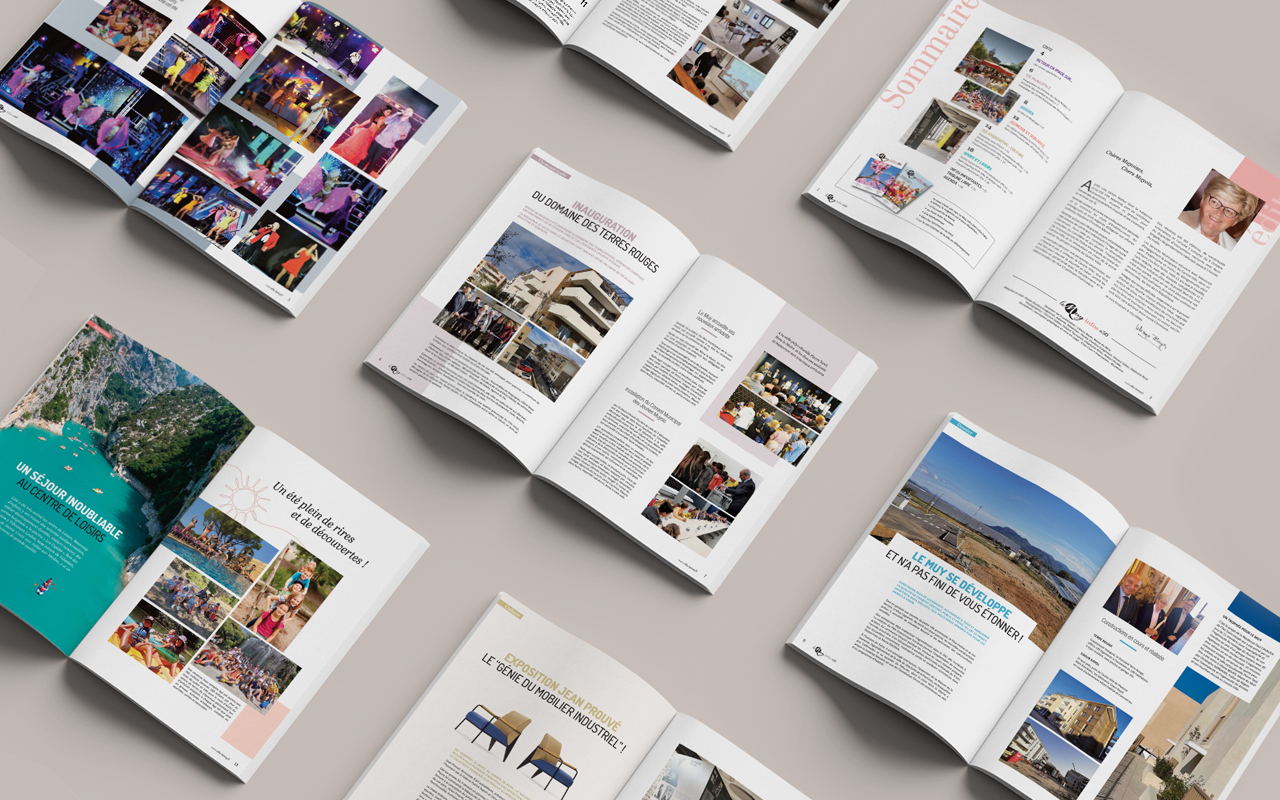 Solution : Nous avons développé une maquette reposant sur une hiérarchie visuelle claire, une mise en page aérée et un rythme éditorial équilibré. Le travail s’est concentré sur l’organisation des contenus, le choix des styles typographiques et la création d’un univers graphique cohérent, à la fois institutionnel, chaleureux et contemporain. L’ensemble a été pensé pour offrir une lecture fluide et rendre le magazine plus engageant pour les habitants.