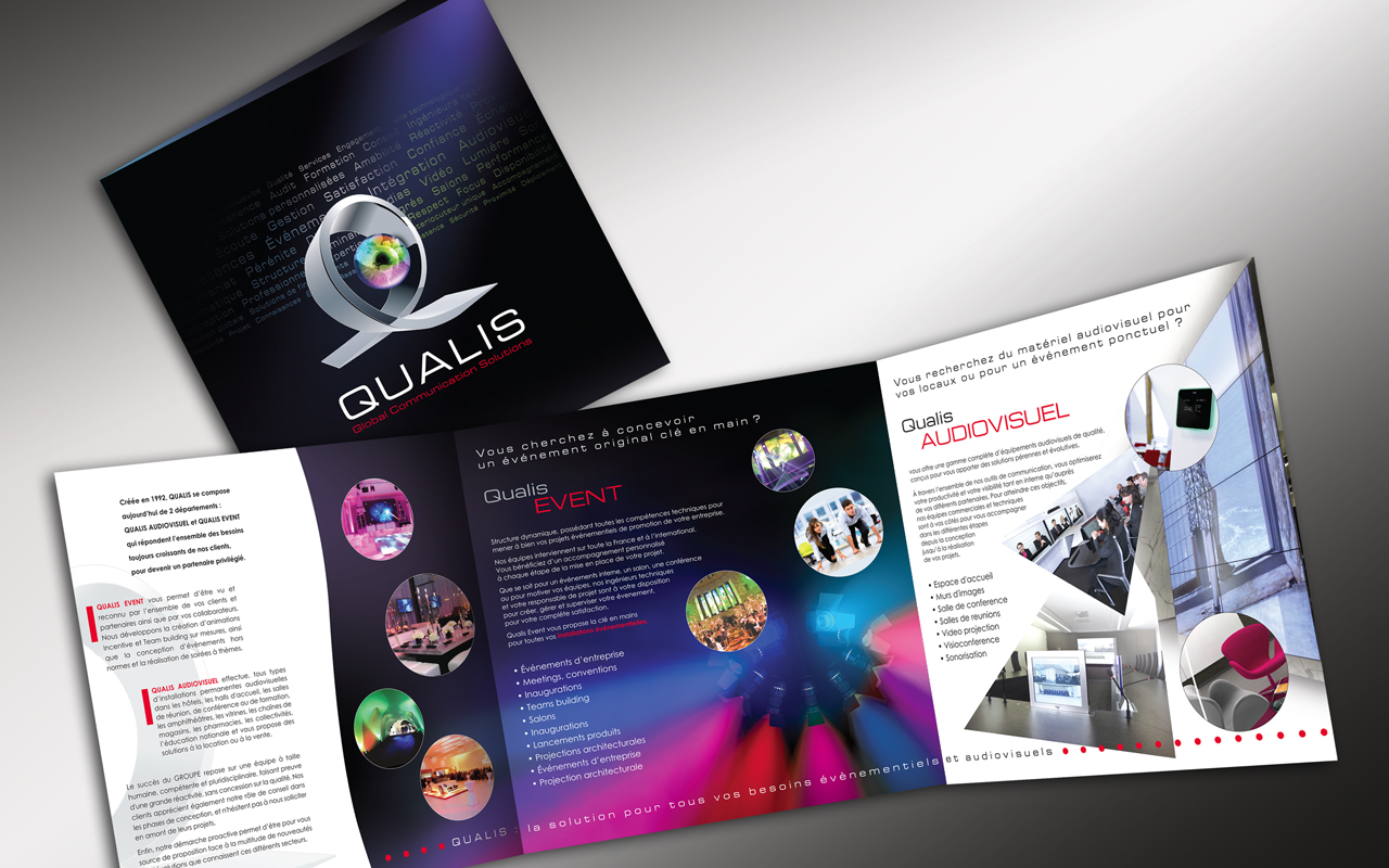 Objectif : Conception d'une plaquette de présentation des activités de Qualis Event et Audiovisuel