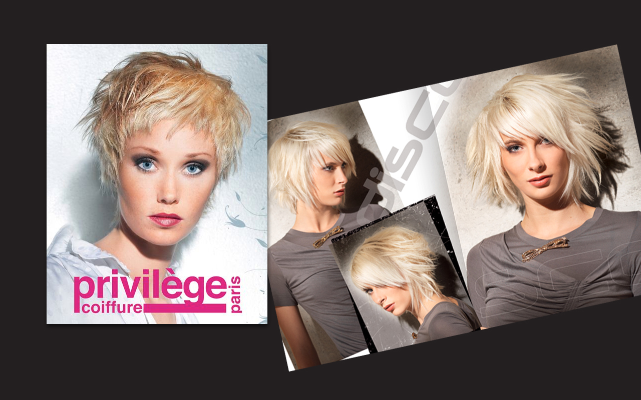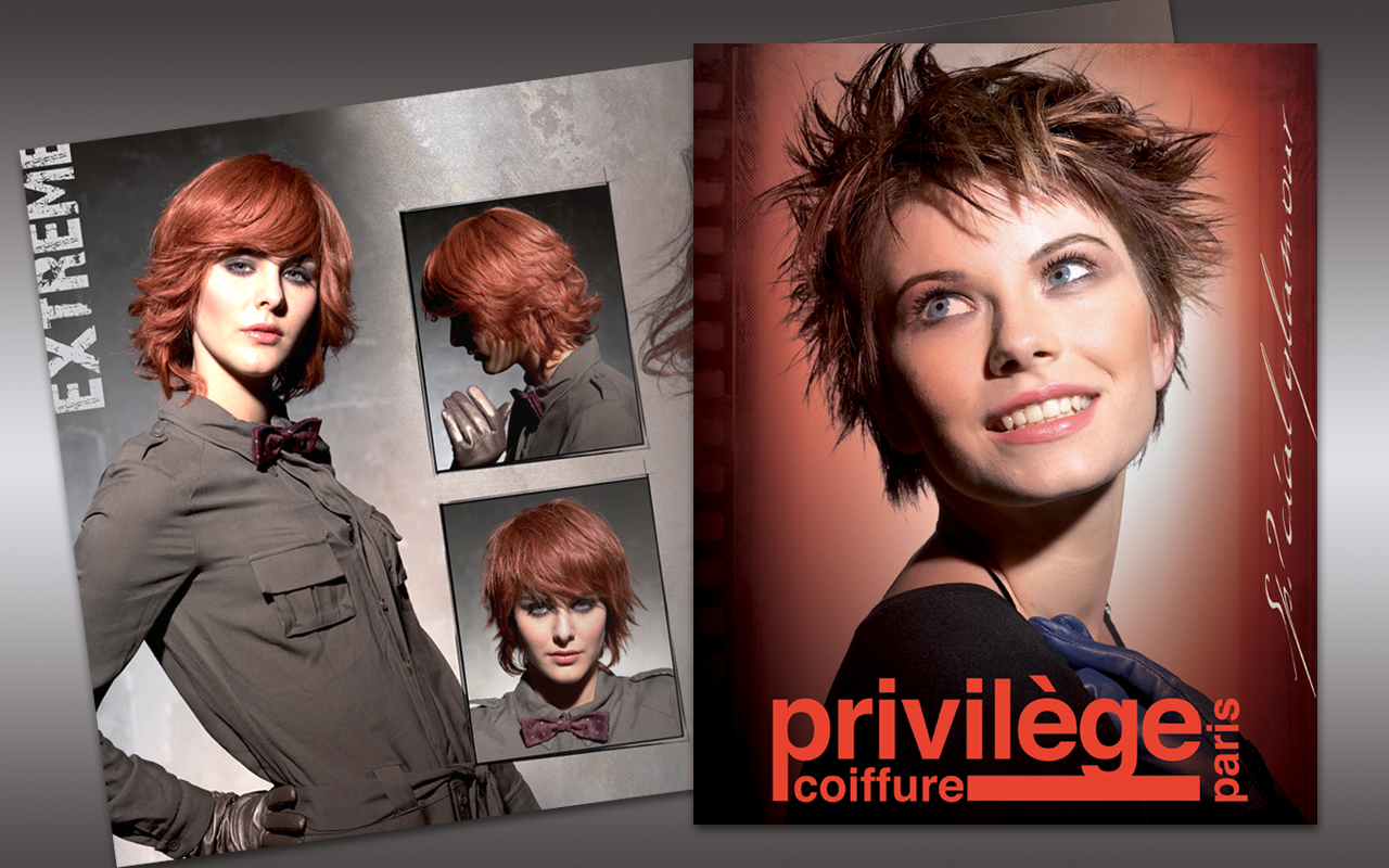 Client : PRIVILEGE Coiffure Paris – Casting, shooting et édition des albums professionnels de coiffure affiches, posters de vitrine, kakémonos, etc.